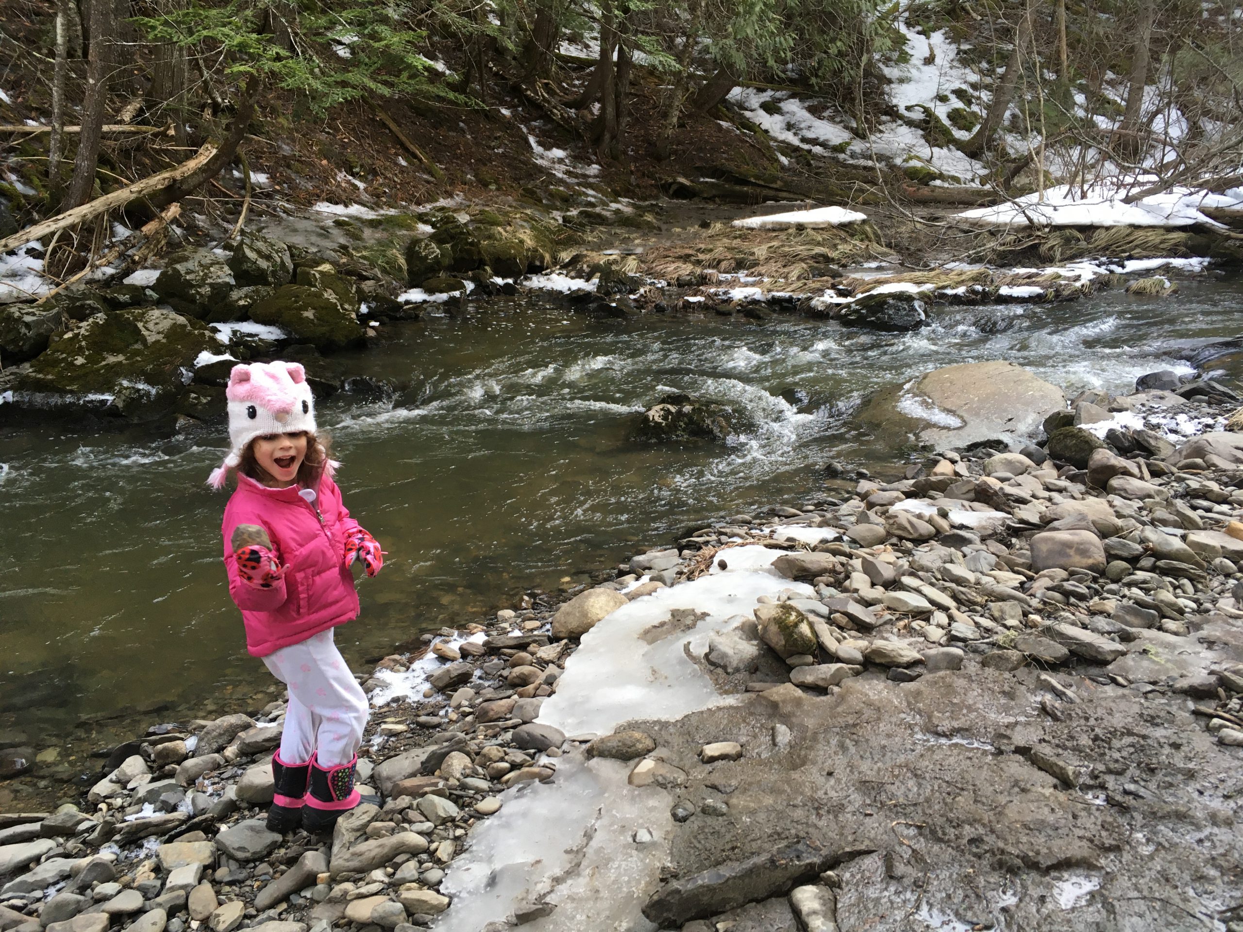 My daughter, Nezzie, is content just tossing rocks in the stream on our property.