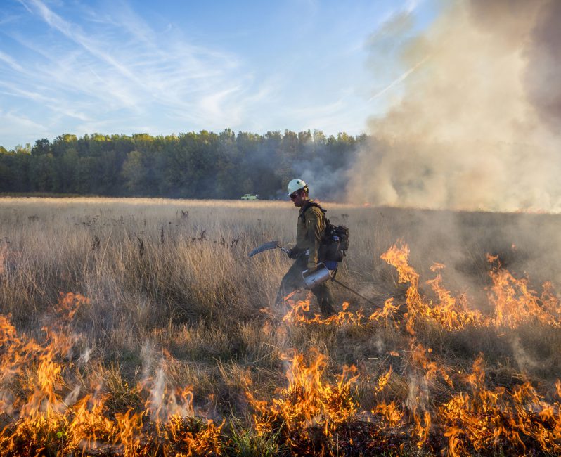 Here in Maine, we’ll see prescribed burns to help with habitats for bobolinks, savannah sparrows, and meadowlarks. We also burn to keep out invasive species like Japanese barberry and autumn olive. Burns also open space for milkweed, very important for monarch butterfly larvae.